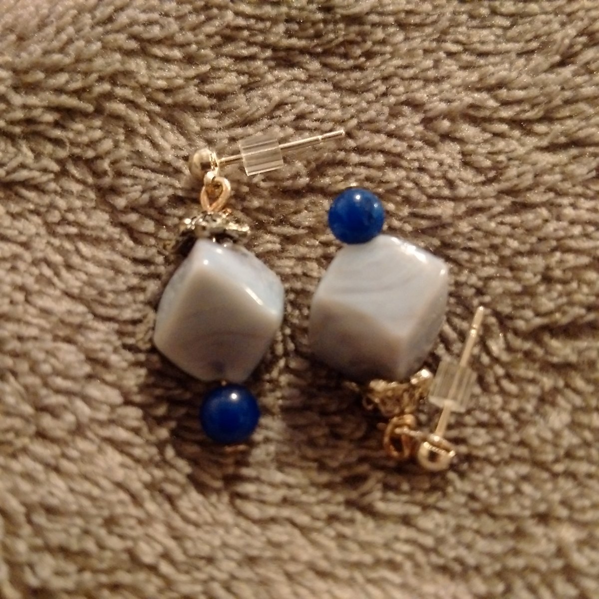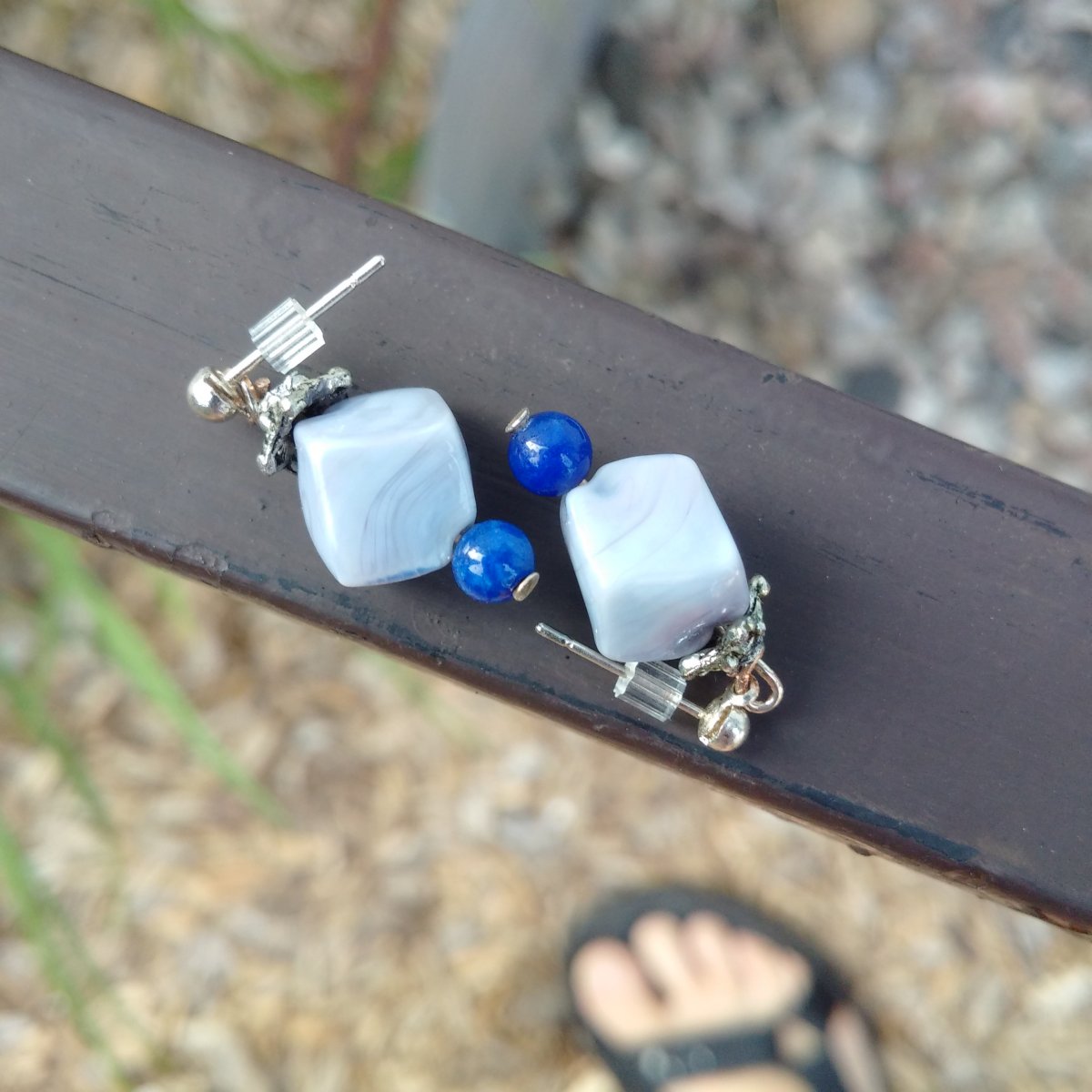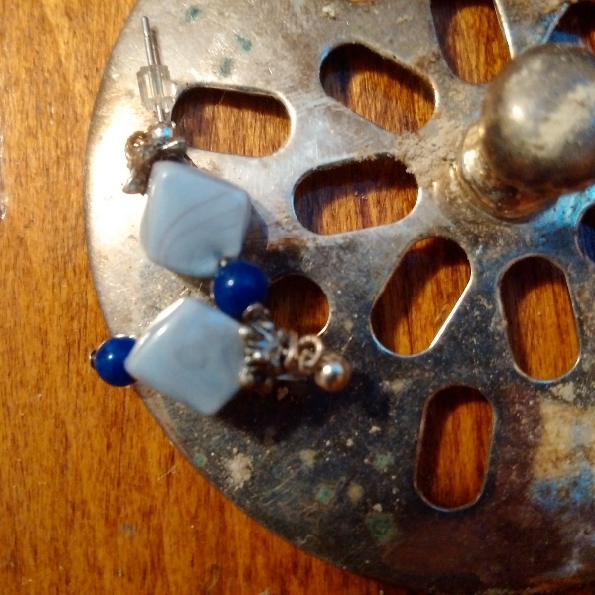 Old: lapis beads, blue lace agate beads, cap beads, head pins.